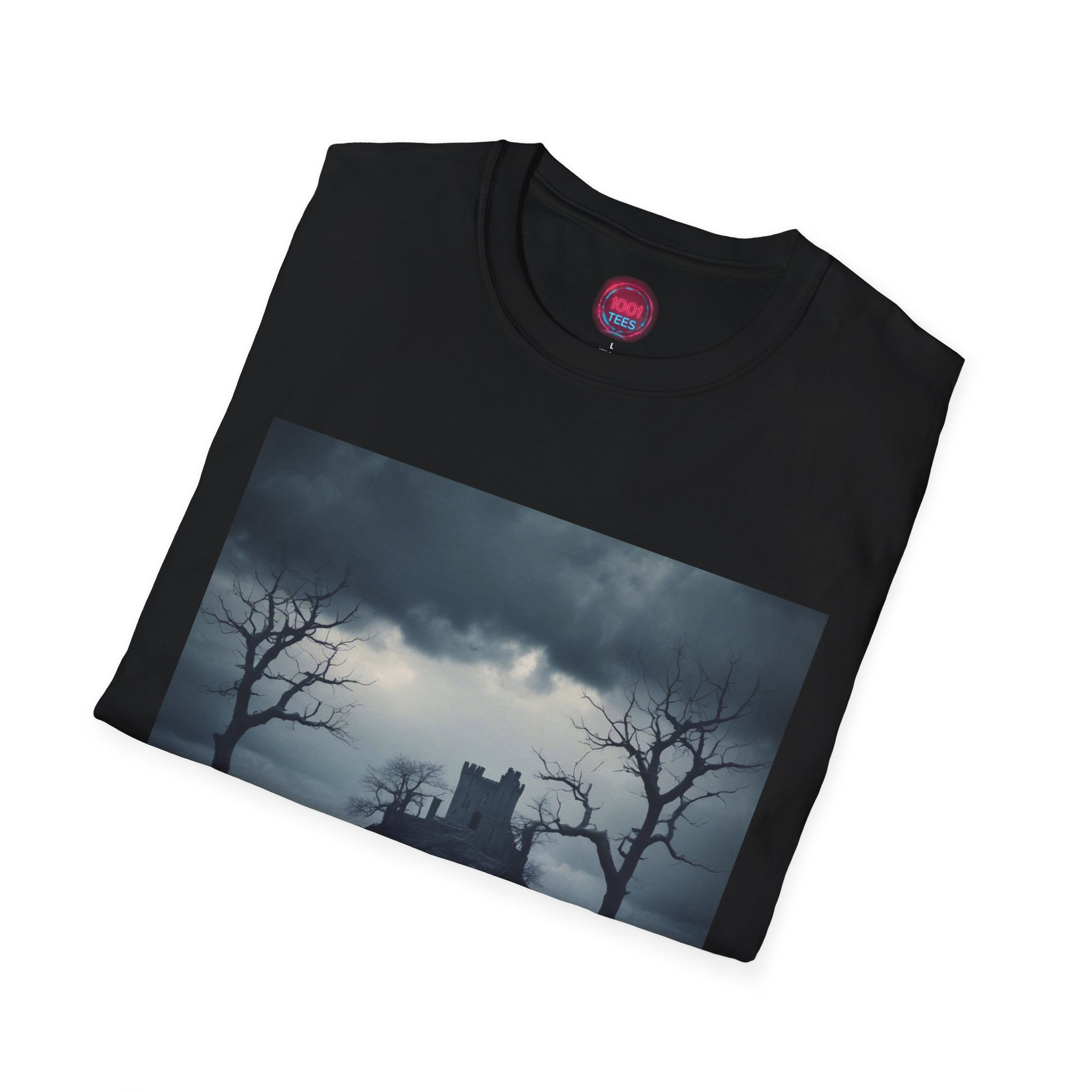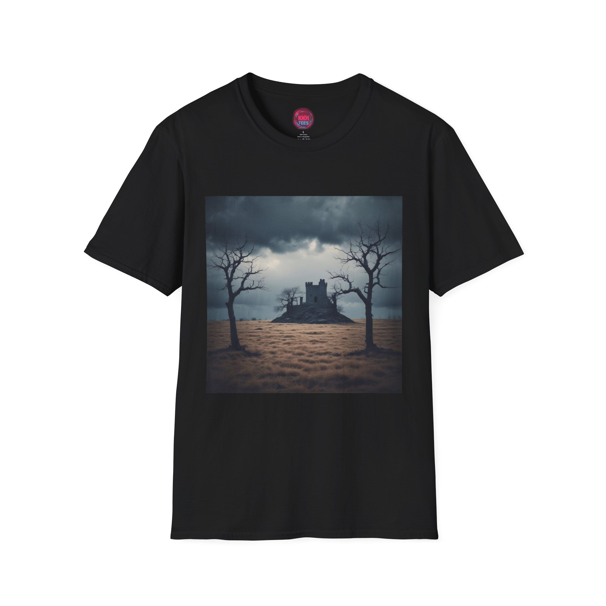 Introducing our Unisex Softstyle T-Shirt, a perfect blend of comfort and style. With its minimalist design featuring an evocative image of a castle beneath a stormy sky, this t-shirt adds a touch of mystery to your wardrobe. Crafted with care, it resonates with those who appreciate unique art and want to express their individuality. Ideal for casual outings, art events, or cozy gatherings, it’s a versatile piece for anyone looking to make a statement. This t-shirt is perfect for gifting on occasions like birthdays, Halloween, or just as a treat for yourself. Embrace your style with ease and confidence!
